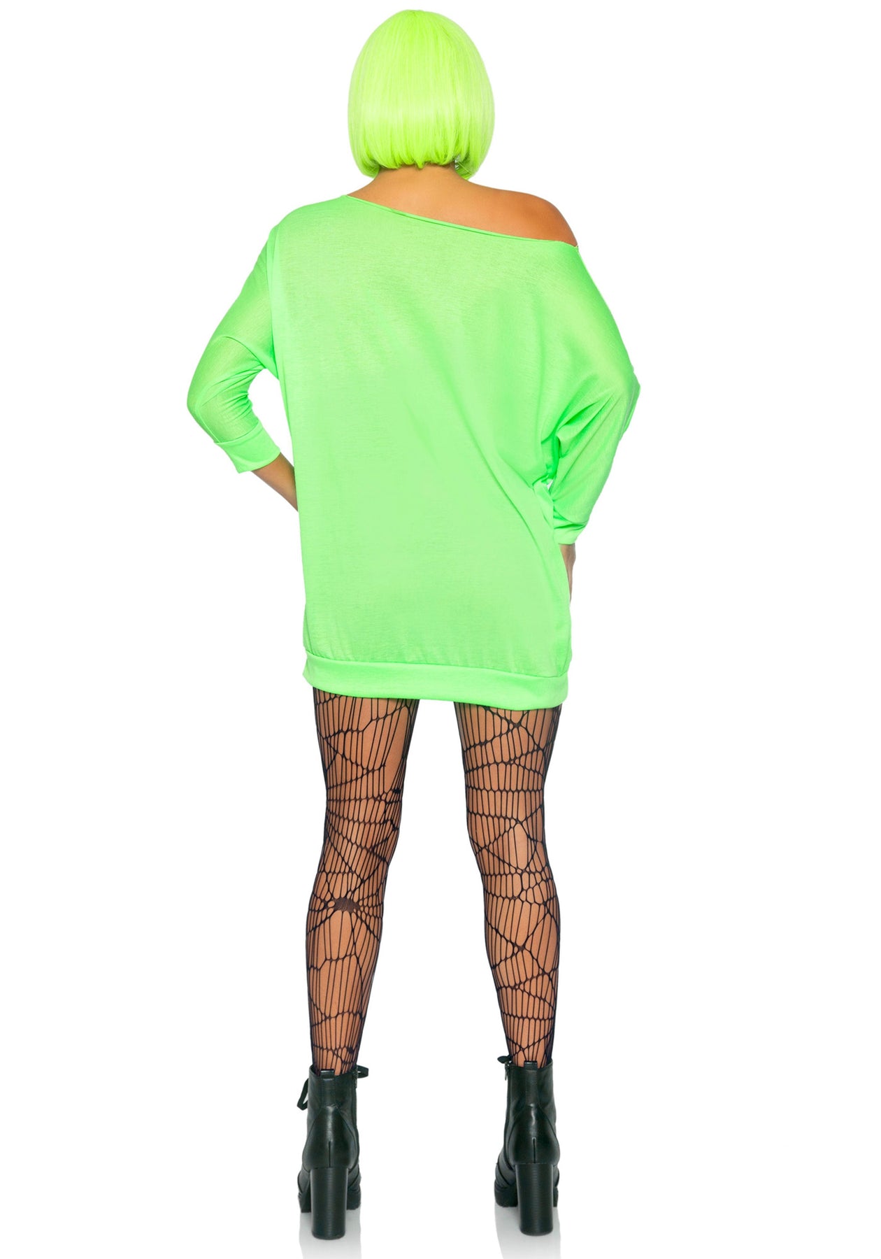 We are in love with this Neon Jersey Mad pumpkin off the shoulder tunic dress with long bat sleeves and contrasting Jack-O-lantern design. The design is keeping you cozy on those cool October nights.